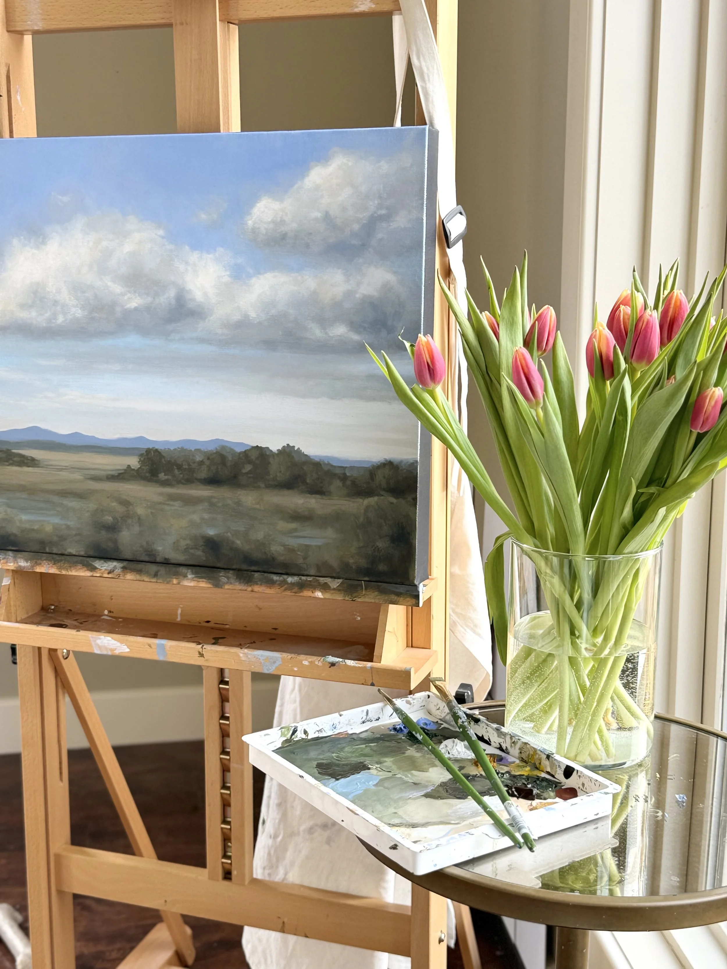 “My work is inspired by calming country landscapes and lake scenes found in Alberta and British Columbia. I love translating peaceful moments onto canvas for others to enjoy in their homes”.